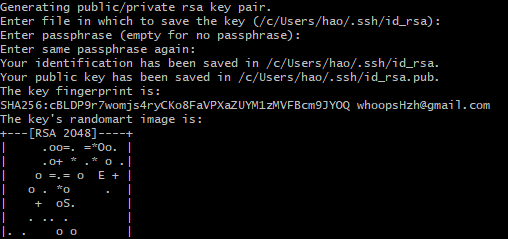 ssh-keygen -t rsa -C "你自己的邮件地址" 三下回车