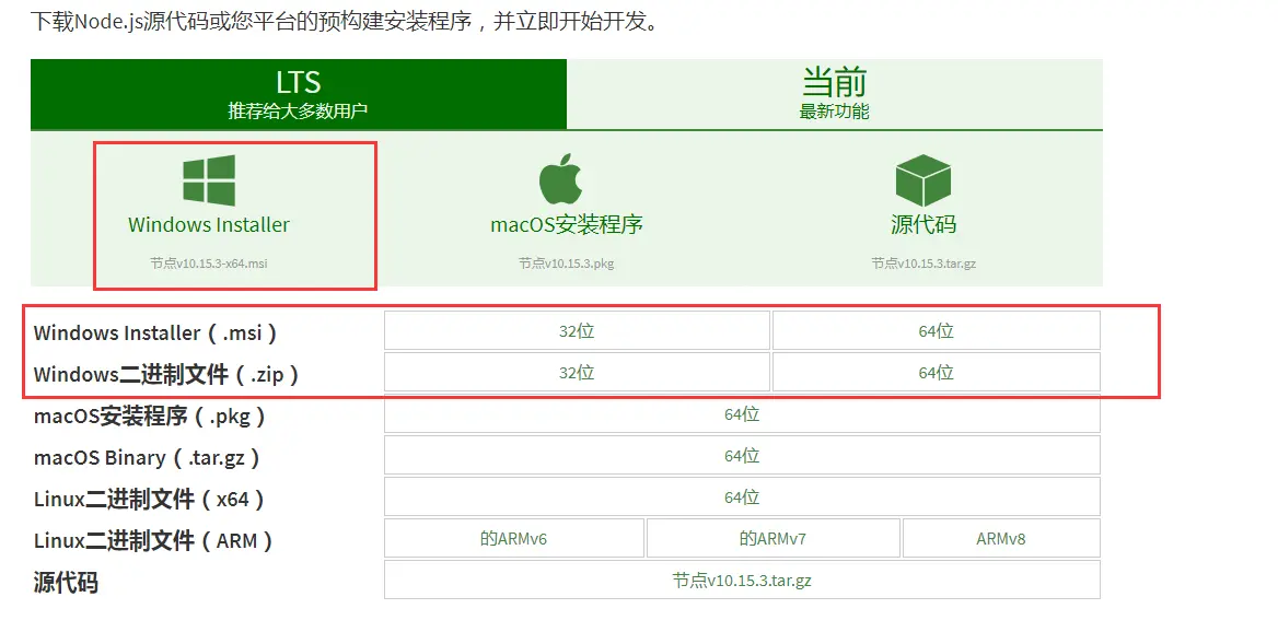 1.没有安装nodejs可以进入nodejs官网选择相应安装包进行下载