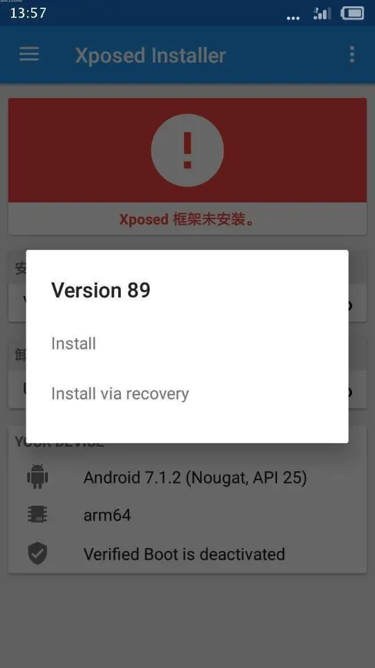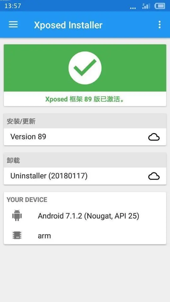 完成以上操作后vivo9.0系统设备会自动进入系统重启过程,系统重启过后,我们再次打开Xposed框架,可以看到Xposed框架已经妥妥激活了。