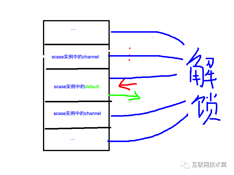 假如没有channel可读或者可写,但是有default语句,则同上:返回default语句对应的scase并解锁所有的channel。