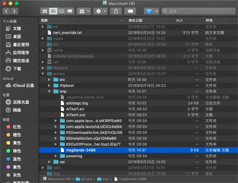 ./private/tmp那么这个路径是怎么来的我们可以看到instrumentObjcMessageSends的源码里有一个objcMsgLogEnabled确认可以打印信息 然后执行objcMsgLogFD == -1 这是一个静态属性 然后logMessageSend会执行 当objcMsgLogFD = -1的时候会输出log当目录。