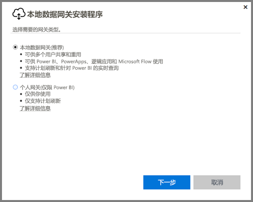 你将从此处转到一个网页,可以在其中选择 Power BI Gateway - Personal,如下所示。