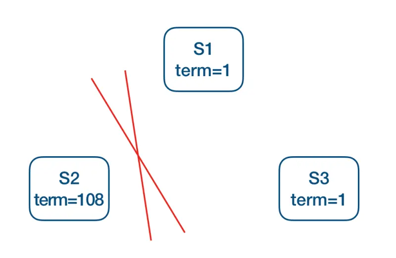 在非对称网络分区中,S2 和 Leader S1 无法通信,但是它和另一个 Follower S3 依然能够通信。在这种情况下,S2 发起预投票得到了 S3 的响应,S2 可以发起投票请求。接下来 S2 的投票请求会使得 S3 的 Term 也增加以至于超过 Leader S1(S3 收到 S2 的投票请求后,会相应把自己的 Term 提升到跟 S2 一致),因此 S3 接下来会拒绝 Leader S1 的日志复制。为解决这种情况,SOFAJRaft 在 Follower 本地维护了一个时间戳来记录收到 Leader 上一次数据更新的时间,Follower S3 只有超过 election timeout 之后才允许接受预投票请求,这样也就避免了 S2 发起投票请求。