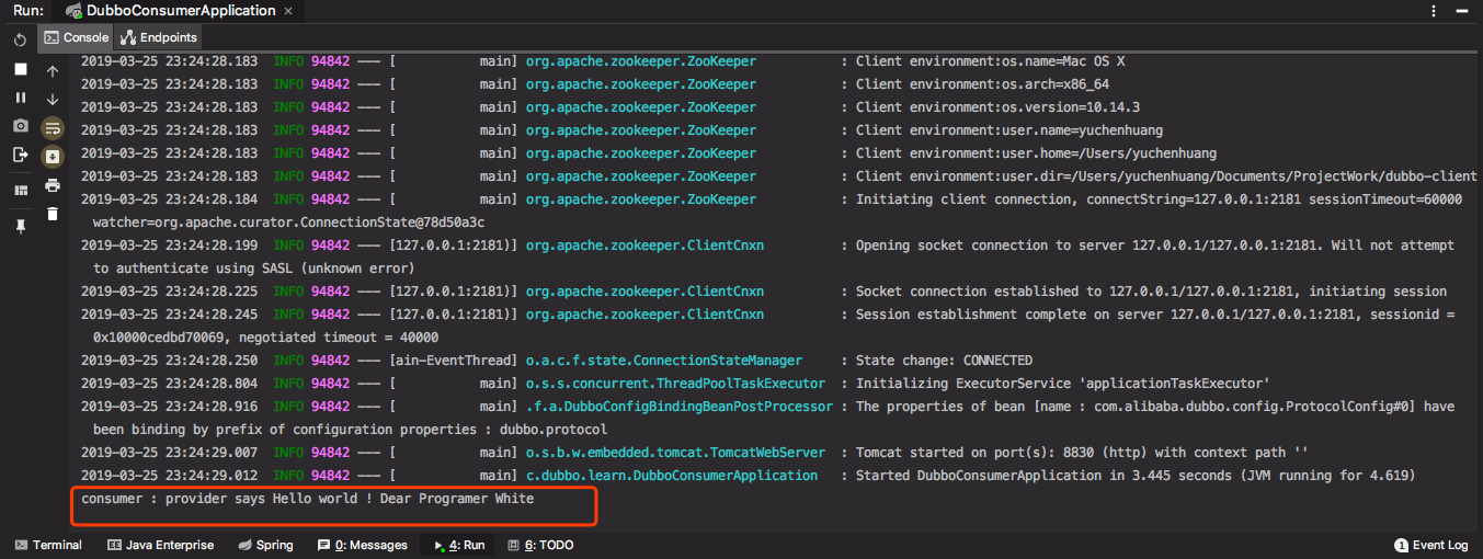 得到Dubbo 实例之后,调用对应的 service就可以使用。
