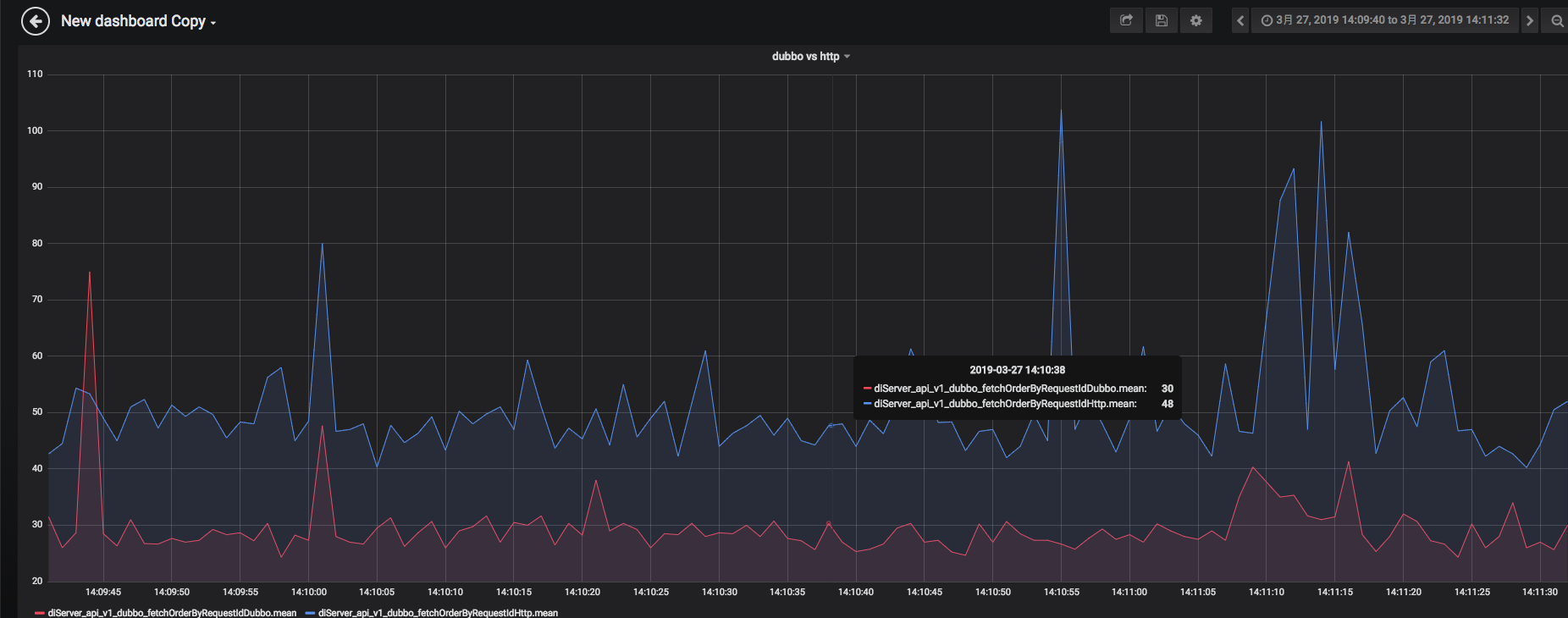 这边尝试使用了调用了同样逻辑的 dubbo 和 http 接口, 对比了一下两个实现的返回时间。