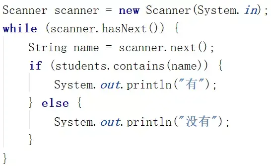 然后用 contains() 方法判断输入的那个名字在没在 List 集合里。