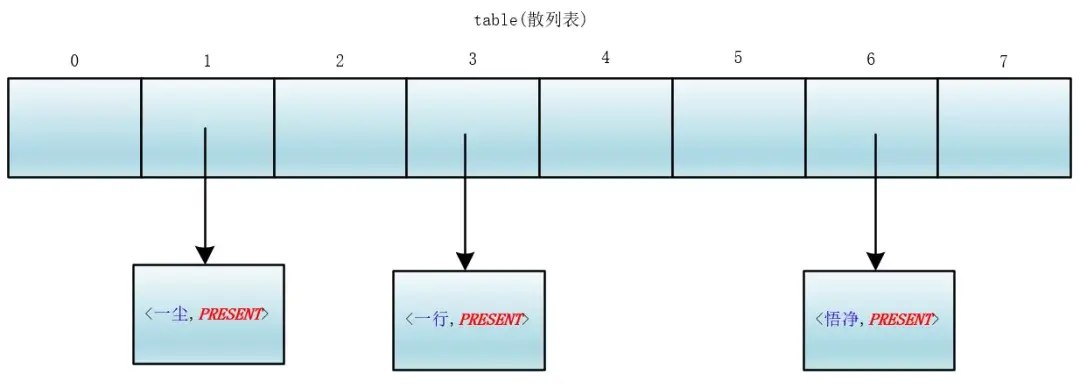 元素被 add 进 HashSet 中的样子是这样的: