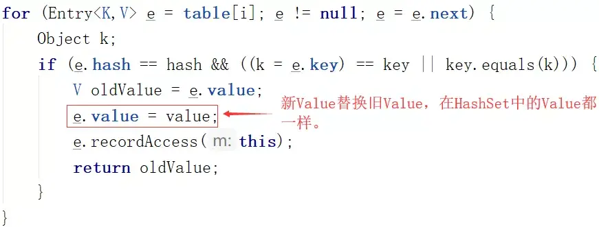 只是 Value 被替换了,然后就return了。这样也就达到了去重的目的(第二个重复的Key没有被添加进来)。