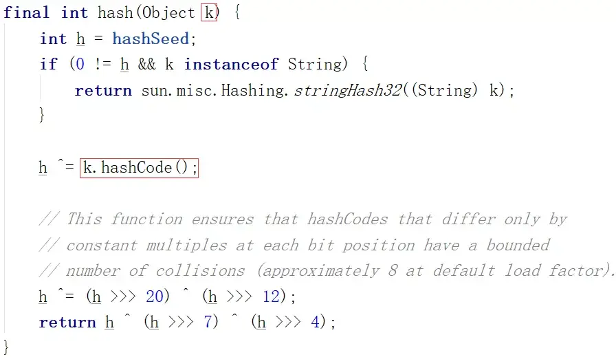 因为key在被put进map中的时候,它到底落在哪个位置(桶)是由它的hashCode决定的。