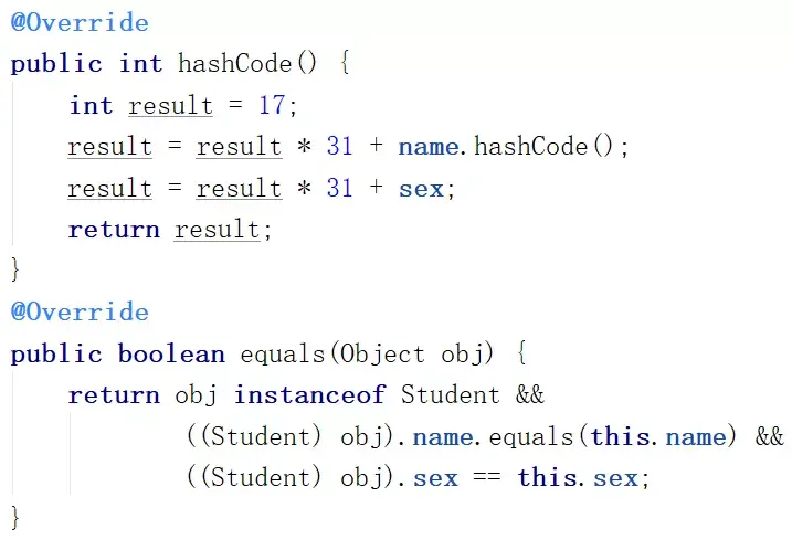 可以看到Object的equals是比较的对象的地址,而你new了两个对象,他们的地址不一样,所以这里就不 return,而是把你的逻辑相同的Student加入到 HashMap之中。