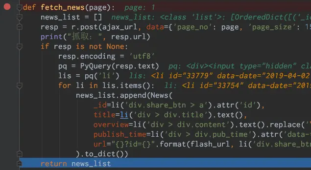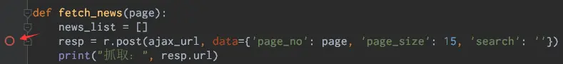 下断点的方式也很简单,点击某行代码的左侧,会出现如图所示的小红点。