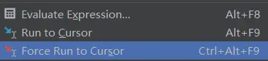 上面的执行到光标处是有个前提的:中途没有断点,如果你想强制执行到 光标处的话,你需要「Force Run to Cursor」,你可以通过下述两种方式执行: