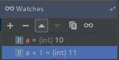 在这个区域可以看到堆栈帧中当前所有的数据(方法参数、本地变量、实例变量)。 右键某个变量,可以进行「设置\复制变量值」,「跳转到变量在代码中的位置」等操作。 一个常用的操作:选择「Add to Watches」,单独监视这个变量的变化。