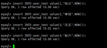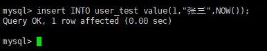 create table user_test( id int comment'ID',name VARCHAR(20) comment'名称', create_time timestamp DEFAULT now() comment'创建时间' );