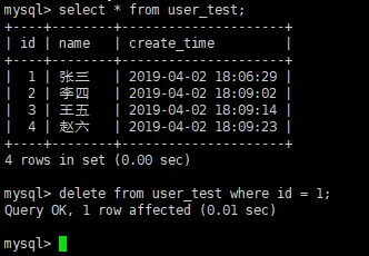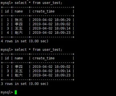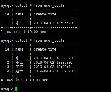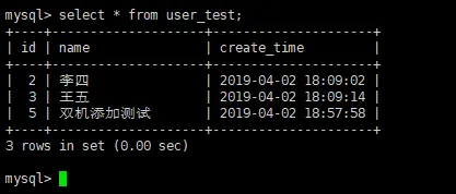 因为之前数据库的数据都是一样的,现在就都新建个test 库,并且在test 库新建表 user_test.