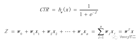 Z是线性边界表现形式,x是特征工程得到的特征向量(onehot后的特征),w是每个特征的权重值。