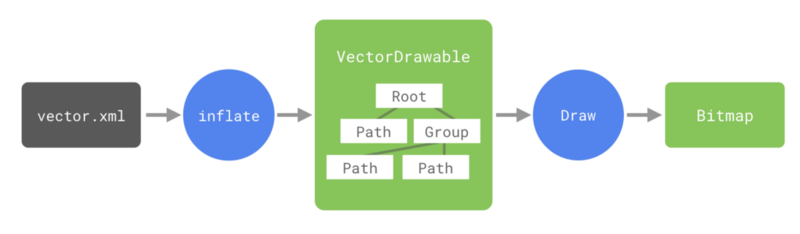 [VectorDrawable](https://developer.android.com/reference/android/graphics/drawable/VectorDrawable)对你声明的 paths 和 groups 进行建模。 - Drawing。然后必须通过执行