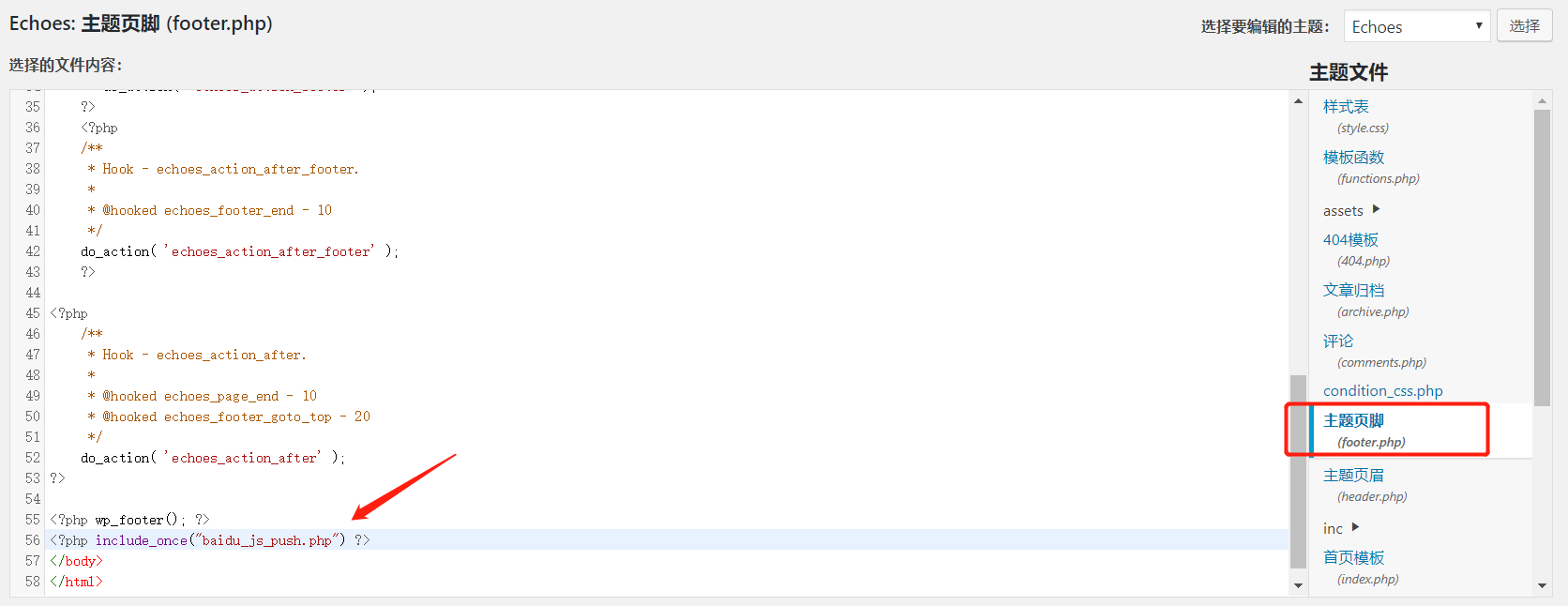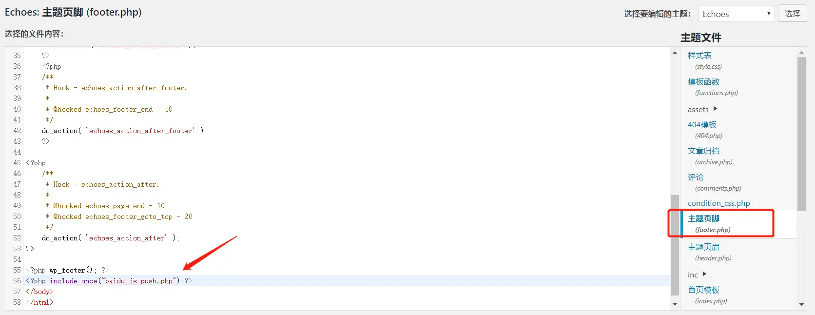 3. 将下面一段代码添加到主题文件的footer.php文件中, 以达到一处安装, 全站皆有的效果。