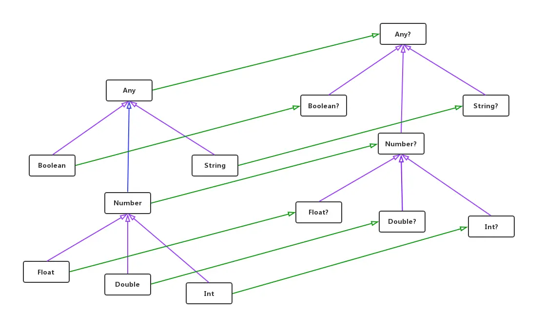 基本数据类型也分为可空类型和非空类型, 具体可参考如下的类型层次结构图:
