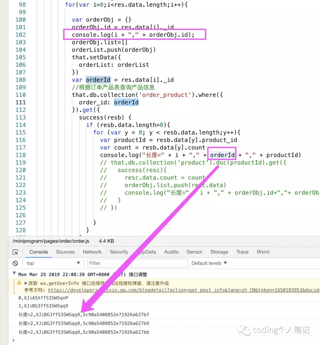 上面打印orderId明明不一样的, 但是放在下面的循环 结果都一样了?