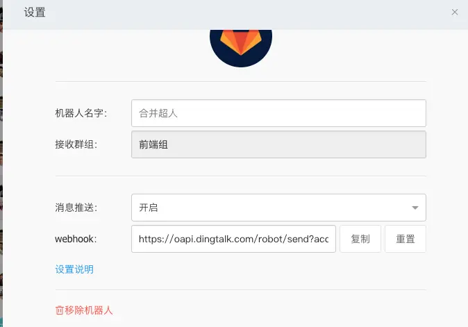 第一步: 在群里添加gitlab机器人,添加完成后会生成一个webhook链接