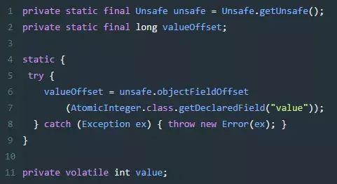 java.util.concurrent.atomic 包下的原子操作类都是基于 CAS 实现的,下面拿 AtomicInteger 分析一下,首先是 AtomicInteger 类变量的定义: