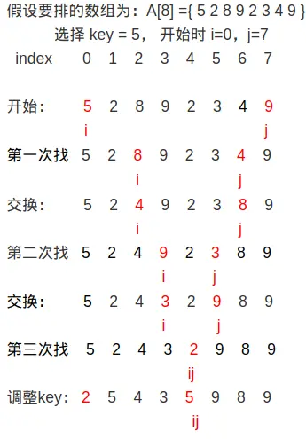 - 完成一趟循环之后,交换key和a[i]的位置
