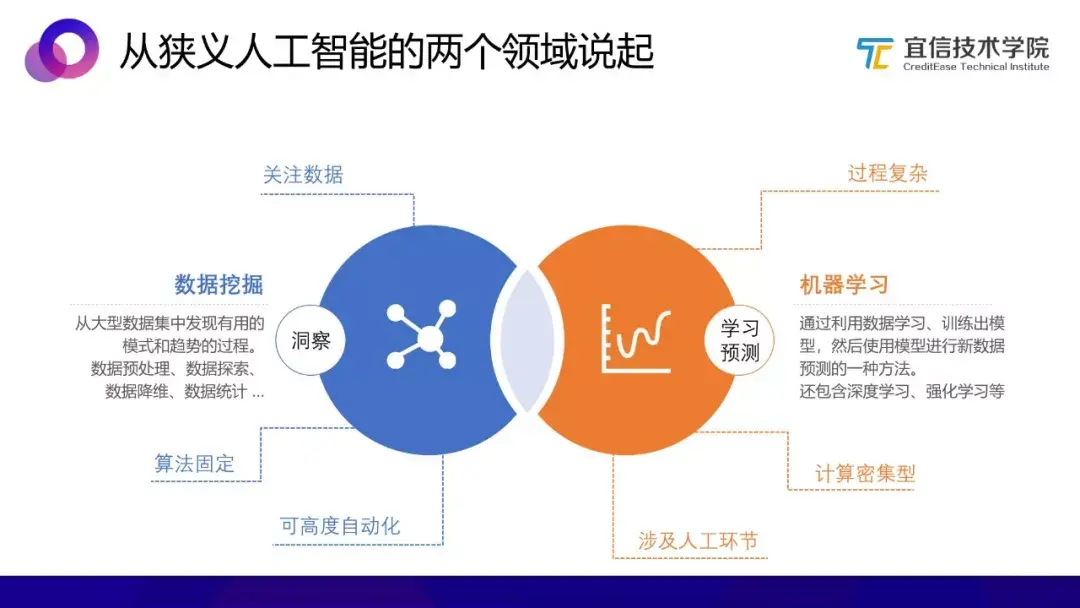总之,两者都是人工智能的重要研究方向,也是企业大数据智能化过程中的重要环节,彼此相互联系,但侧重点存在不同:数据挖掘更侧重于“洞察”,而机器学习更侧重于“学习”和“预测”。