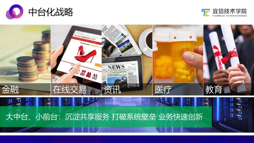 无论是在金融、在线交易、资讯、医疗还是教育行业,业界对中台战略的研讨包括企业日常活动中的各个环节,例如业务中台、技术中台、移动中台等等,但在数据时代,企业中的大量业务都运行于大数据之上,数据的响应能力、处理能力决定了业务效率,所以中台战略中最主要的、也是实施的起点,仍然是数据中台。数据中台实现了组织内数据标准的统一,并打破数据壁垒,构建统一数据实体,对外提供统一的数据服务。通过这三个“统一”实现了组织内的数据资产中心,为前台业务提供了自动化、自助化的敏捷数据能力输出。