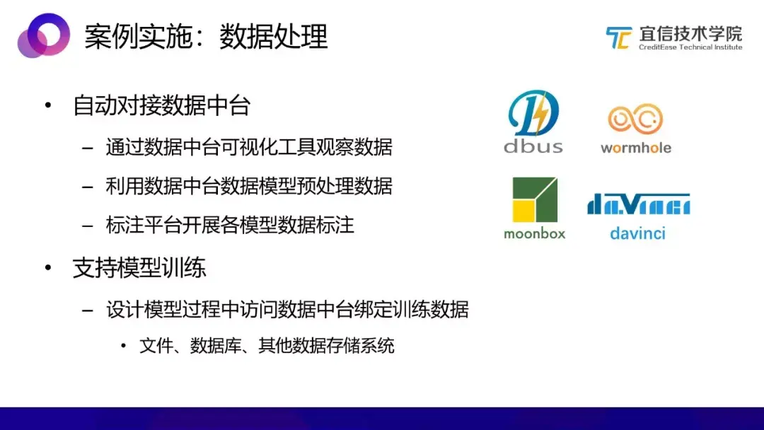 上图右侧展示的是宜信已经开源的工具,包括DBus、Wormhole、Moonbox、Davinci,可以帮助大家更好地构建数据中台。