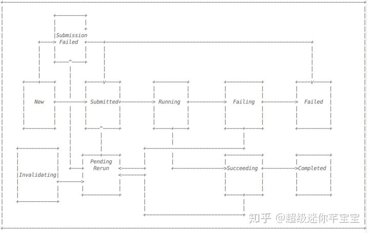 一个Spark的作业任务可以通过上述的状态机转换图进行表示,一个正常的作业任务经历如下几个状态: