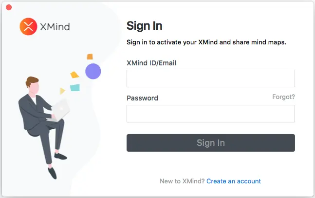 - 使用密码输入您的XMind ID /电子邮件,然后单击登录。 请注意,如果您购买XMind:ZEN的订阅,则没有许可证密钥。