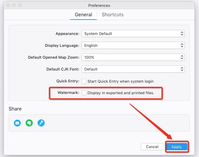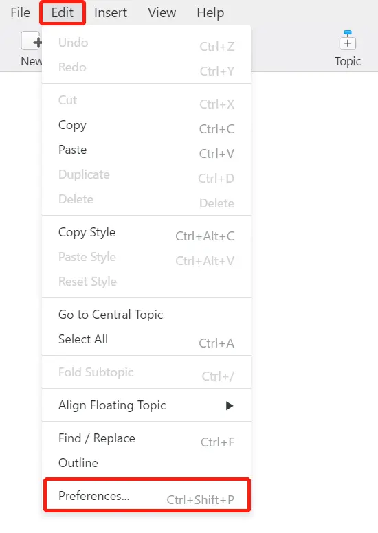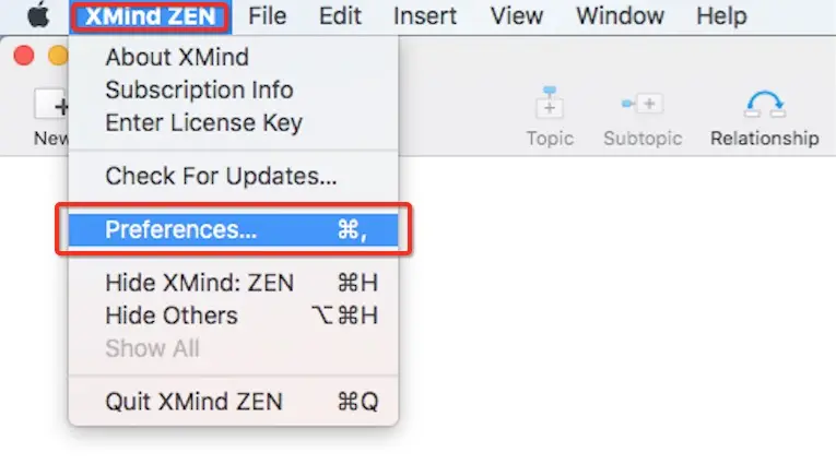 - 单击XMind:ZEN>首选项(在Mac上)