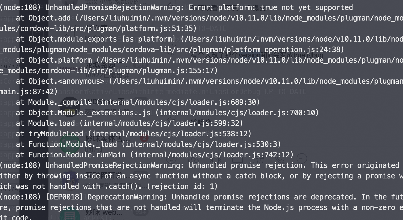 今天原生的同事来找我,他在自己的环境下安装了 plugman后,在增加环境时候报错如下: