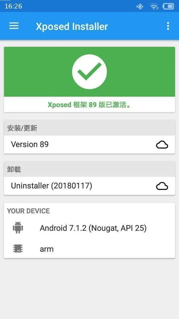 后续安卓5.0以上机器会自动进入系统重启过程,系统重启之后,我们再次打开XPOSED框架,可以看到XPOSED框架已经正常激活了。