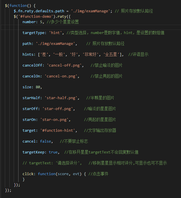 3.由于jquery.raty是已经别人封装好了的, 所以就尽情使用吧!
