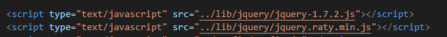 2.下载好文件后自然是引入了, 记住jquery.raty是依赖于jquery的, 所以要