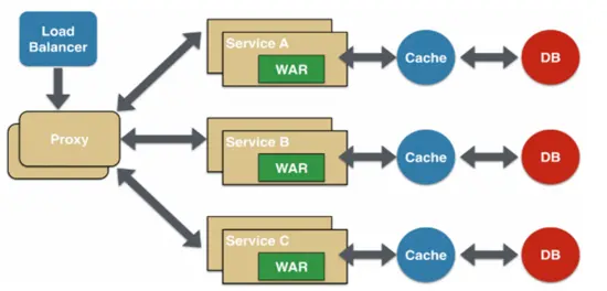 在这种情况下,部分微服务可能会共享缓存和数据库存储。不过,这只有在两个服务之间存在强耦合关系时才可以。对于基于微服务的新建应用程序而言,这是一种反模式。