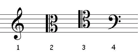 这里面常用的是1和4 这两个符号是干嘛的呢 我们不是有很多音嘛,中音、高音、低音一共88个音呢,这两符号,简单粗暴,一个叫高音谱号,一个叫低音谱号,什么意思呢?