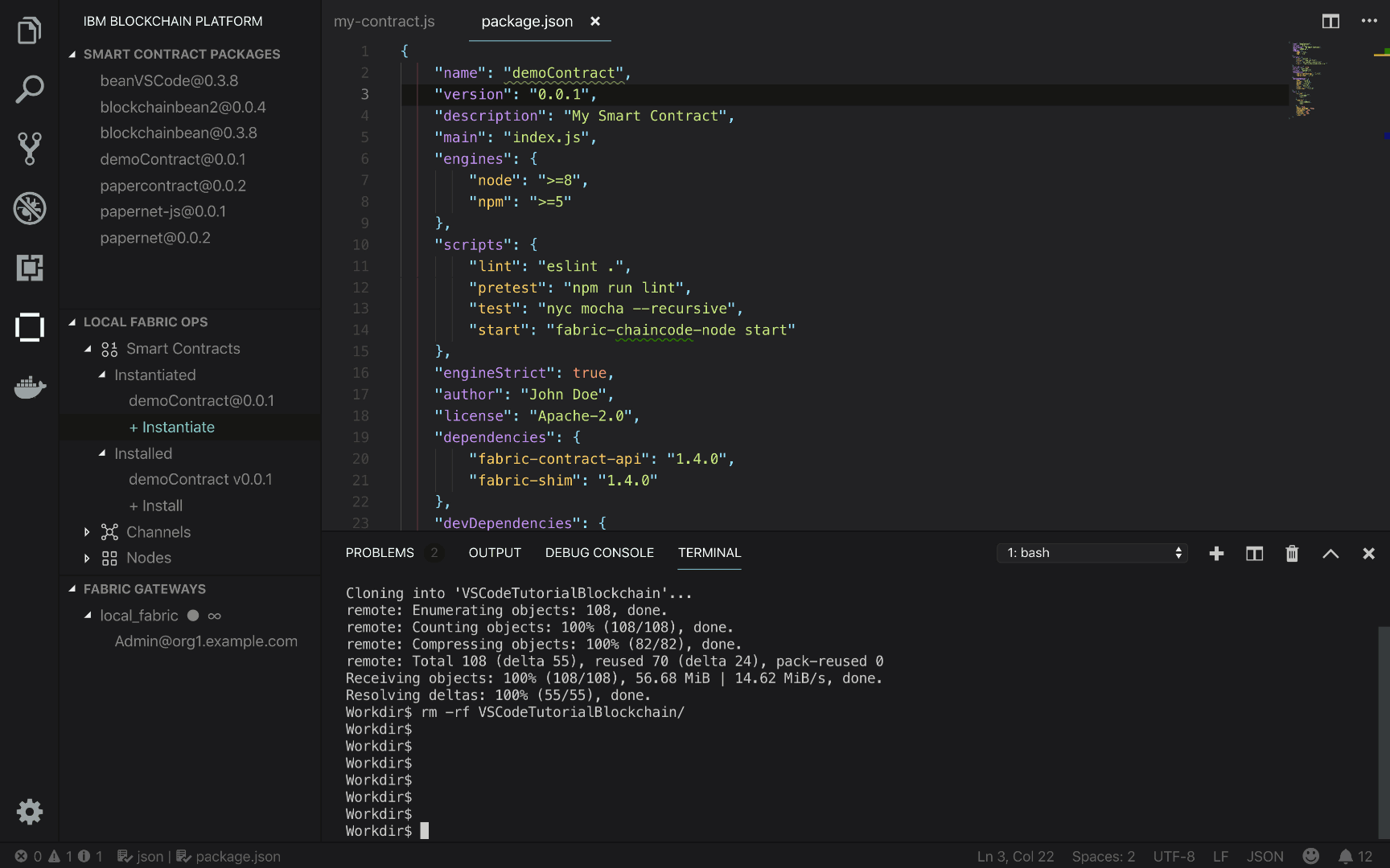 VSCodeTutorialBlockchain文件夹。从那里,使用以下命令安装所需的依赖项: