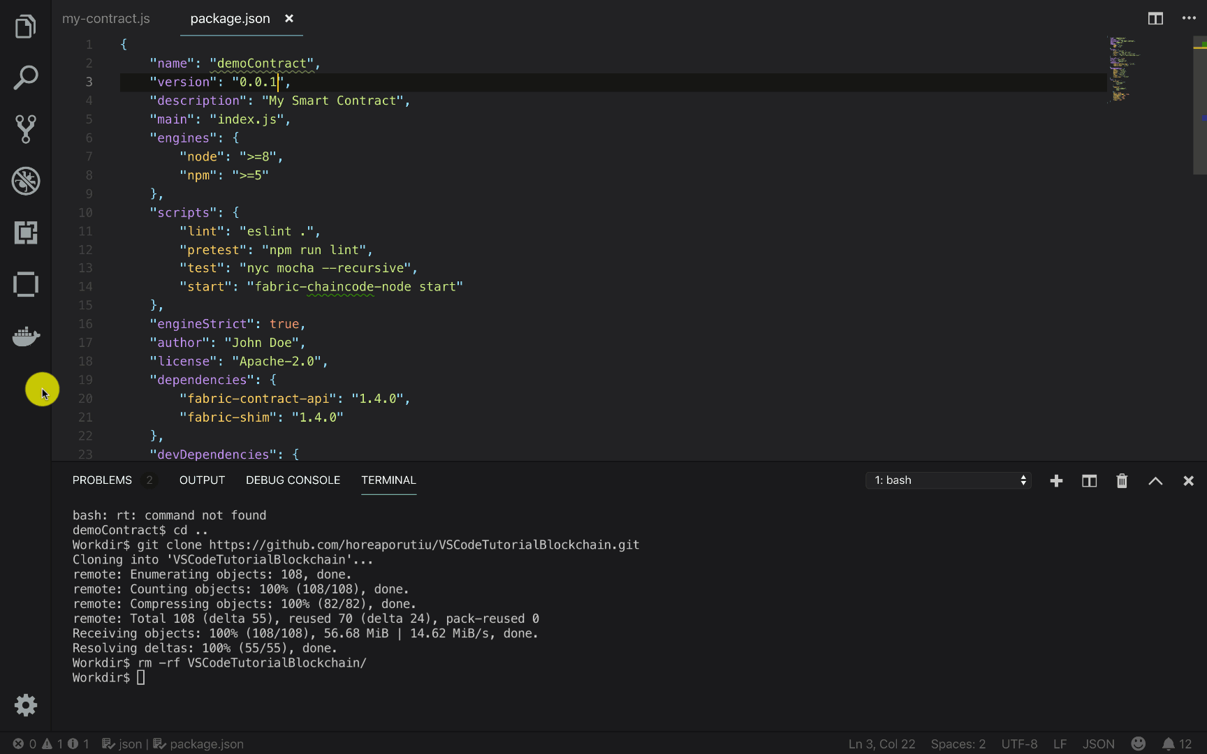 $ git clone https://github.com/horeaporutiu/VSCodeTutorialBlockchain.git