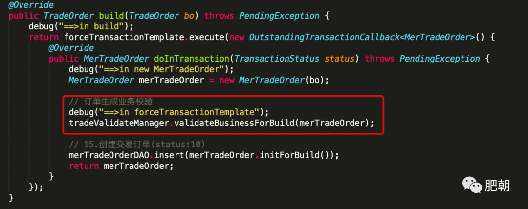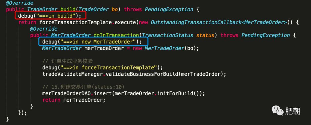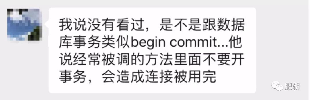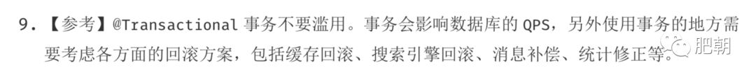 那么什么样叫做滥用呢?其实肥朝认为,即使这个方法经常调用,但是都是单表insert、update操作,执行时间非常短,那么承受较大并发问题也不大.关键是,这个事务中的所有方法调用,是否是有意义的,或者说,事务中的方法是否是真的要事务保证,才是关键.因为部分同学,在一些比较传统的公司,做的多是能用就行的CRUD工作,很容易一个service方法,就直接打上事务注解开始事务,然后在一个事务中,进行大量和事务一毛钱关系都没有的无关耗时操作,比如文件IO操作,比如查询校验操作等.例如本文中的