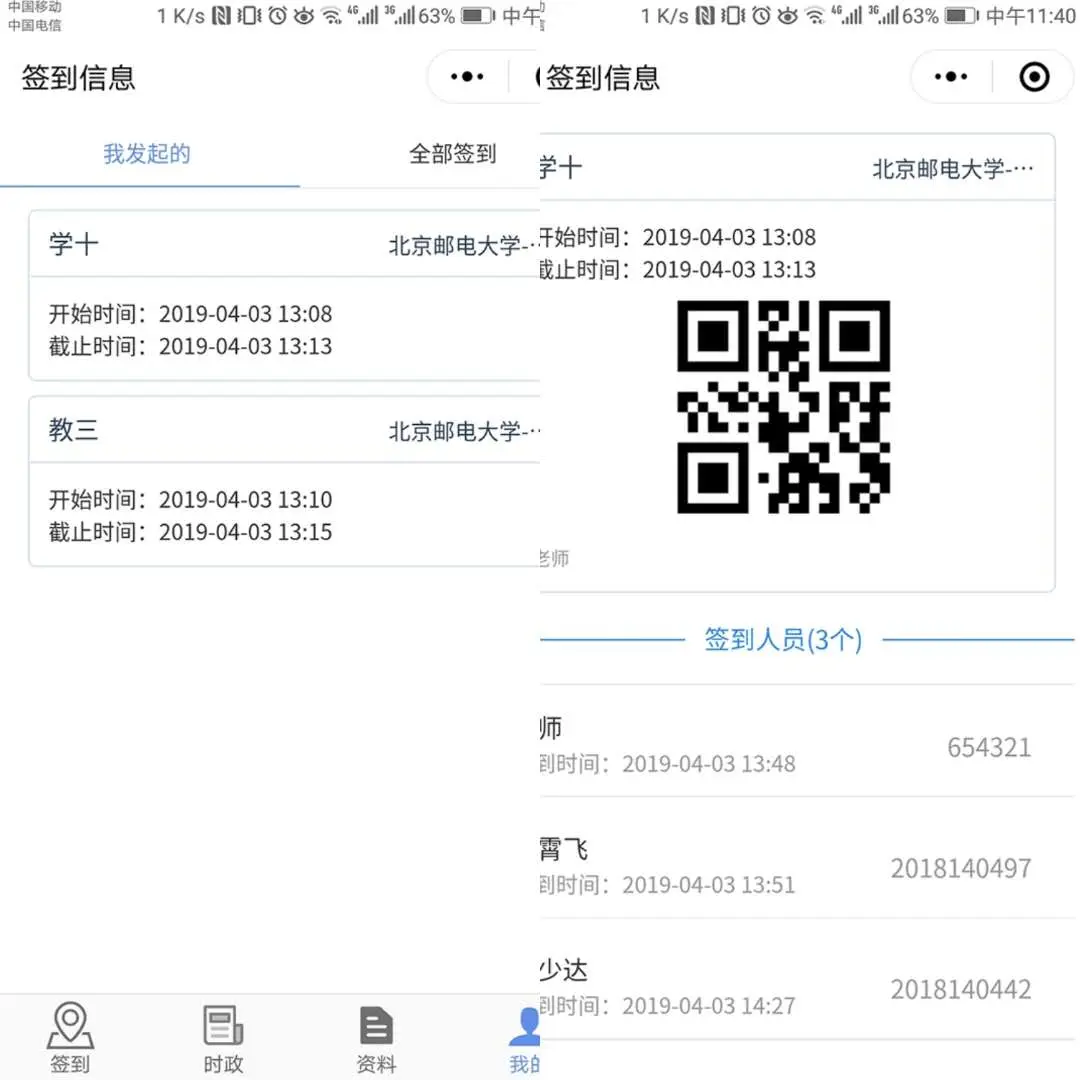 功能概述:基于地理位置(经纬度)的签到平台。另外包括校内新闻模块,word资料下载模块,个人信息模块等。扫码登录: 学生体验账号 123456,密码 123456。
