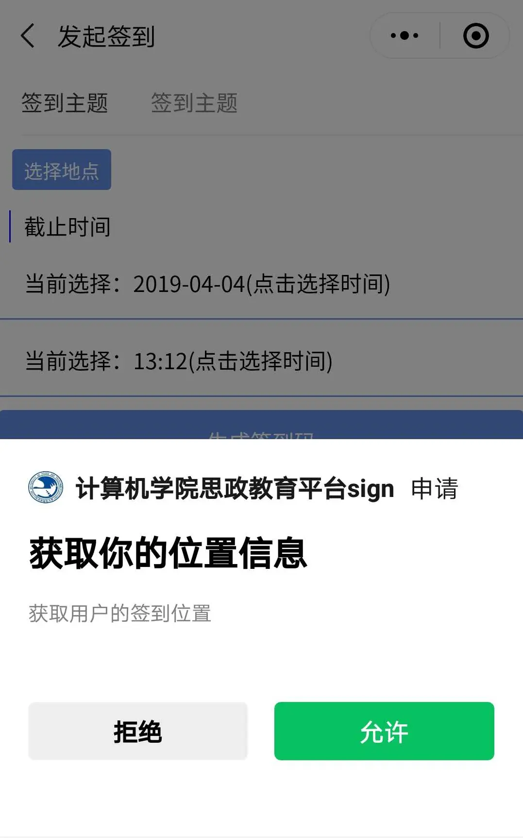 "desc": "获取用户的签到位置"