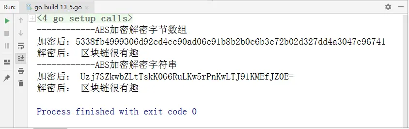 13 fmt.Println("------------AES加密解密字节数组")