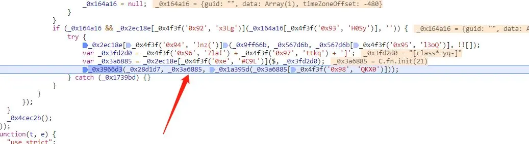 格式化就可以看到上图的代码,一眼看去,这代码很像我之前这篇请求网页时,怎么给我返回了一段 JavaScript 代码,都是前面一个大数组,然后在一个地方把这个数组的顺序,然后通过一个函数来将这个数组的元素来解密成正常的函数名。接着就是检测你有没有展开代码之类的,展开了就会内存爆破,具体的都可以看看我刚说的这篇文章。