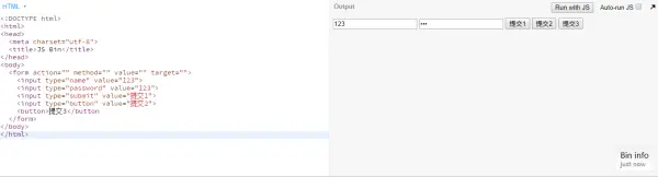 - form标签发送请求是通过和input标签结合来使用,从图中可以看到有三个提交按钮,只有(提交1、提交3)可以提交请求,(提交2)不可以提交。即提交方式可以通过(input标签设置type="submit")或者(直接使用button标签)。