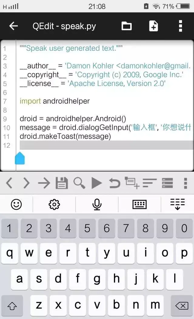 这里介绍一个软件—QPython3,集成了Python3解释器,既可以命令行运行Python,还可以编辑源文件后运行,支持代码高亮、语法检查等功能,下面我简单介绍一下这个软件的安装和使用: