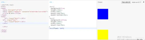 - 【2】Box垂直方向的距离由margin决定。属于同一个BFC的两个相邻Box的margin会发生重叠