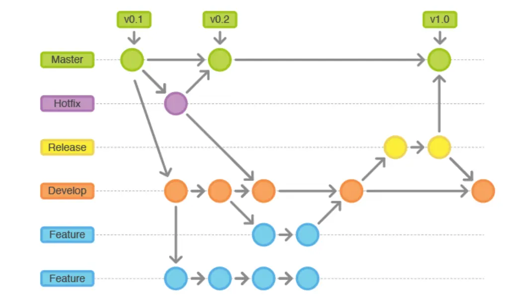 自从互联网和软件公司,从SVN切到Git做代码管理,开发和测试都觉得,公司档次瞬间提升了一些。我们能把代码管好,防止这个那个带来的代码问题。大家都想着去遵守Git流程最佳实践,如下图所示: